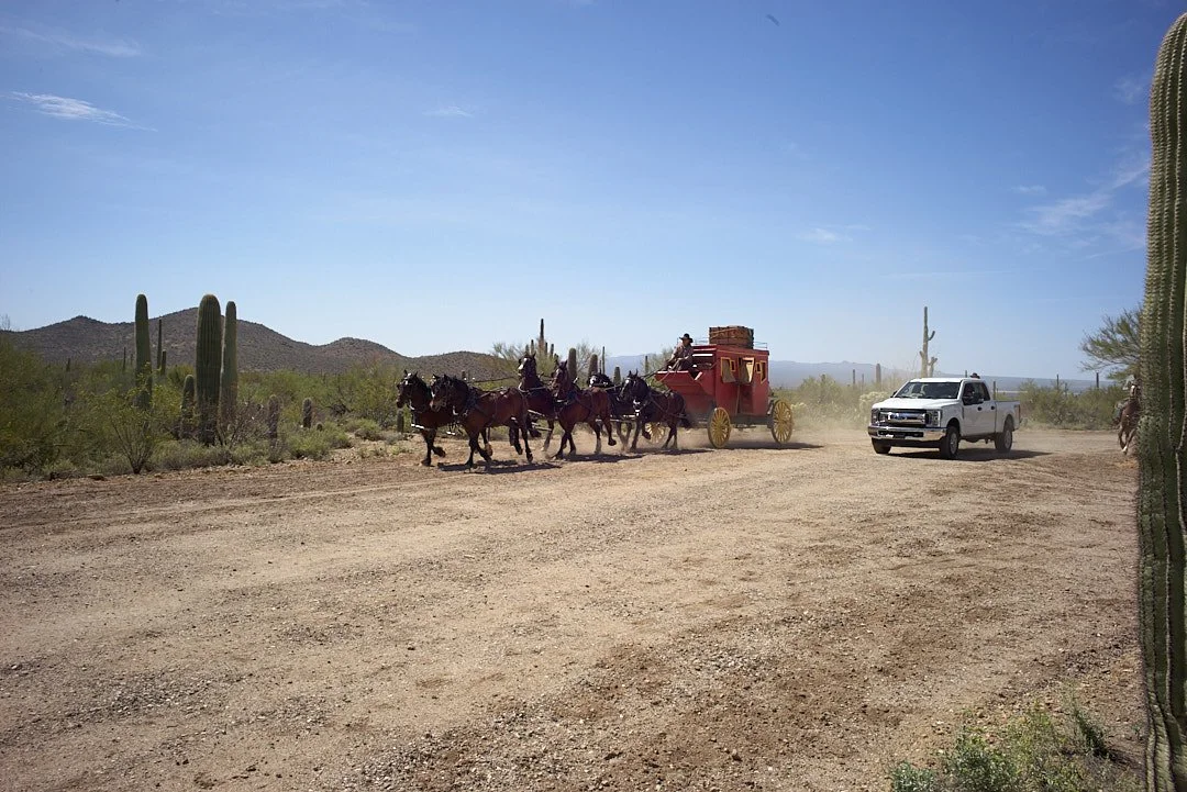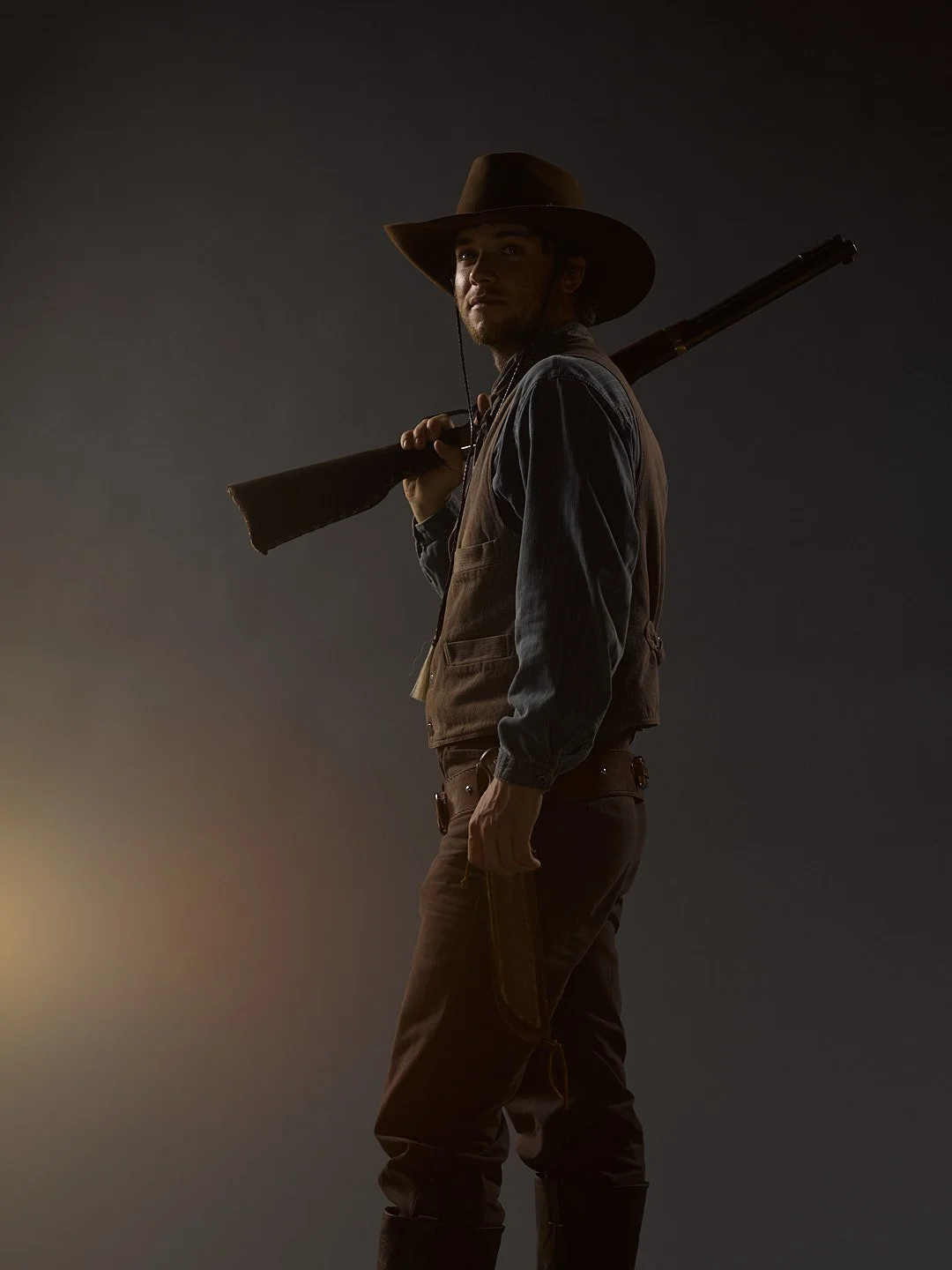 This key art was conceived as a classic Western tableau—iconic, character-forward, and immediately legible at a distance. The composition leans into mythic symmetry, placing the two leads back-to-back. Their poses are restrained but loaded with tension, allowing wardrobe, posture, and expression to communicate character without overt action.